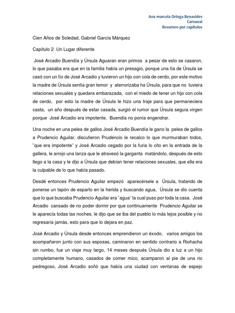 Cien años de soledad pdf resumen por capitulos. Recordar aquella tarde remota en que su padre lo llevó a conocer el hielo. Y da un ejemplo en “cien años de soledad” que cada capitulo incluye la reaparición de personas que al principio pueden ser falta de definición pero a través de cada capitulo se van convirtiendo en personajes. Ate, la hija de la discordia.